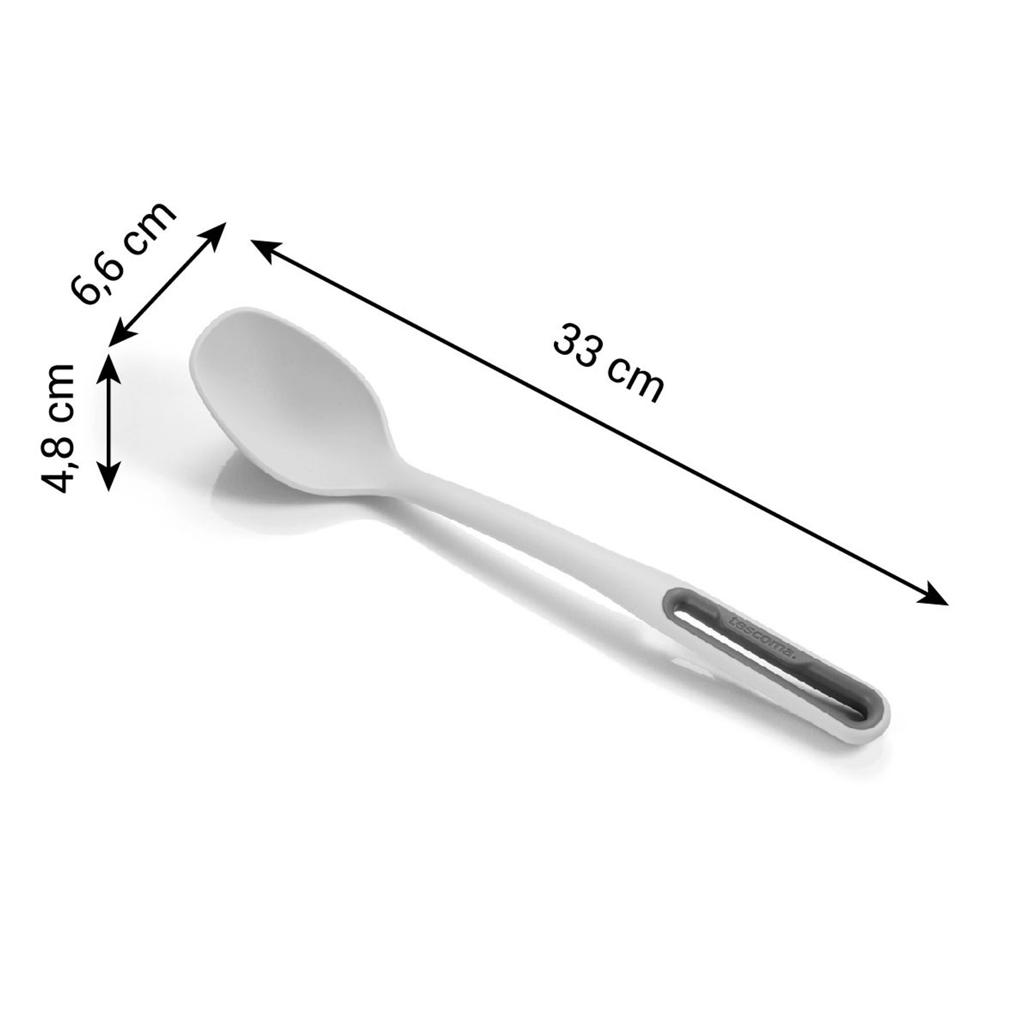 Ложка SILICON PRIME виготовлена з термостійкого силікону, який витримує температуру до 220 °C. Вона міцна, довговічна та водночас дбайливо ставиться до поверхні посуду, не пошкоджуючи антипригарне чи керамічне покриття.