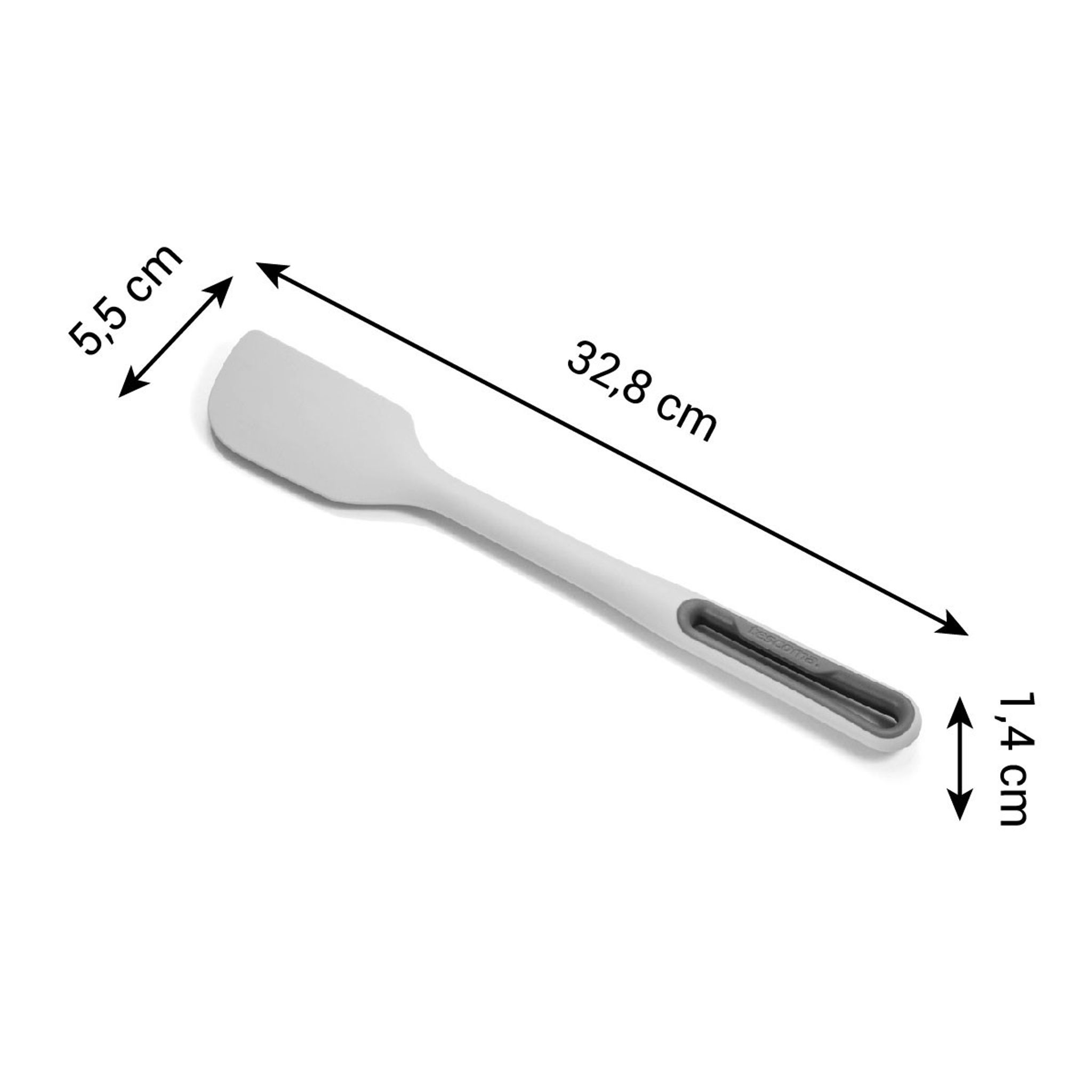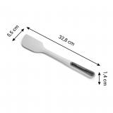 Заокруглені краї робочої частини дозволяють легко працювати навіть у кутах посуду, а поздовжній отвір у ручці зменшує вагу, забезпечує комфорт під час використання та дає змогу підвішувати лопатку на гачок.