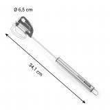 Знімна пластикова вставка у робочій частині підсилює ефективність збивання, що особливо зручно під час приготування білкової піни або вершків.