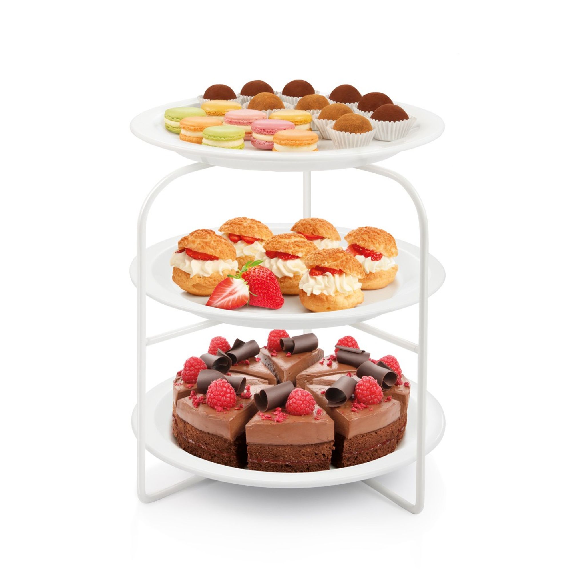 Сервірувальна підставка для тарілок ONLINE дозволяє охайно розмістити тарілки з готовими стравами, закусками чи солодощами під час зберігання або подавання.